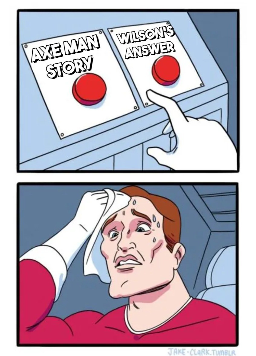 Returning to the question, it’s no surprise that Wilson, imagining the scenario in which that conspicuous button would be pressed, replied:
